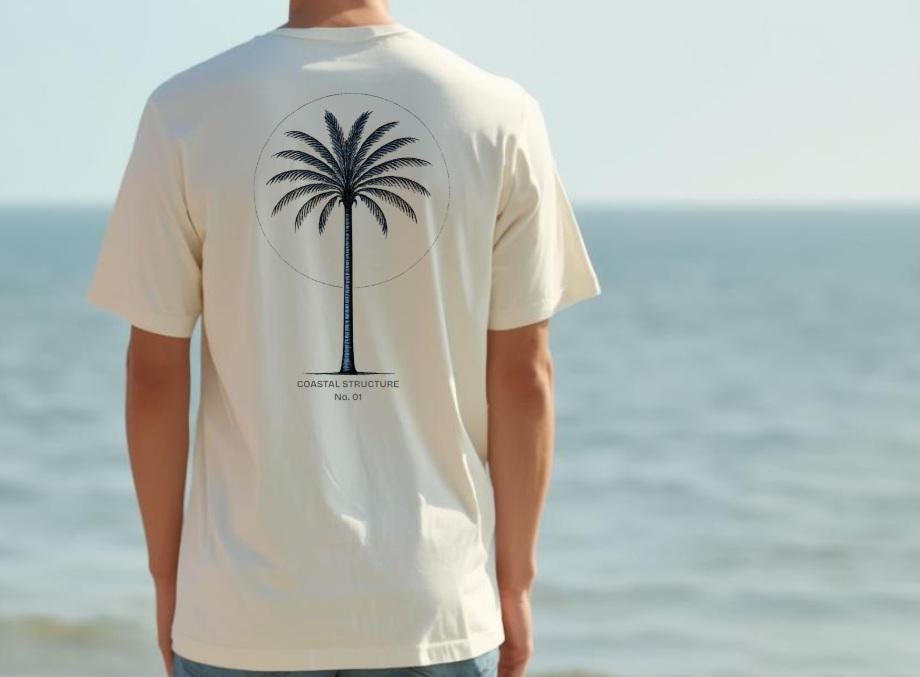 Meet the tee for people who like their coastline with a little structure. The Coastal Structure design is all clean lines, quiet geometry, and “I actually notice the details” energy. It’s giving modern beach architecture. It’s giving tide‑meets‑drafting‑table. It’s giving I could build a boardwalk if I felt like it, but I’m busy being effortlessly coastal.