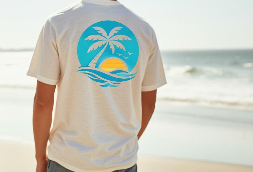 The Sunrise Tee is your daily reminder that life hits different when you’re near the water. A rising sun, rolling waves, and a lone palm come together in a bright, easygoing graphic that feels like the first perfect morning of vacation — the one where the air’s warm, the tide’s calm, and you swear you can hear the day stretching awake.