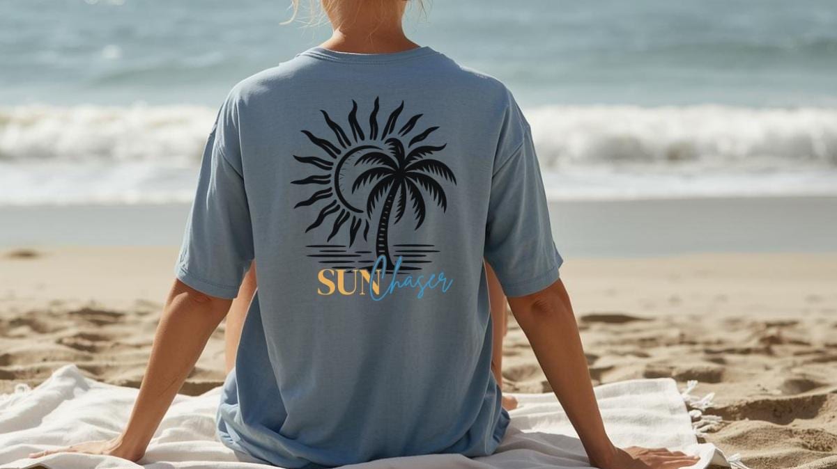 A bold coastal graphic tee featuring a rising sun, clean palm silhouette, and warm wave lines for effortless beach‑town energy. The Sunchaser Tee blends modern surf style with a bright, laid‑back vibe — perfect for sunrise coffee runs, sandy‑foot days, and anyone who naturally gravitates toward the warm hours. Printed on premium Comfort Colors for a soft, lived‑in feel with a relaxed, everyday fit. A clean, wearable coastal staple built for sun‑seekers and shoreline wanderers.