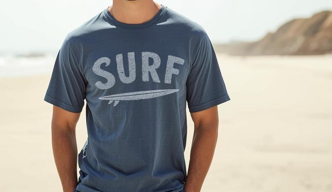 This one’s for the board‑brained, salt‑kissed, sun‑chasing crowd. A bold SURF stamp paired with a clean little board graphic that basically says, “I’d rather be catching a set.” It’s easy, beachy, and built for anyone who keeps sand in their car year‑round. Throw it on, head toward the shoreline, and let the day do whatever it wants.